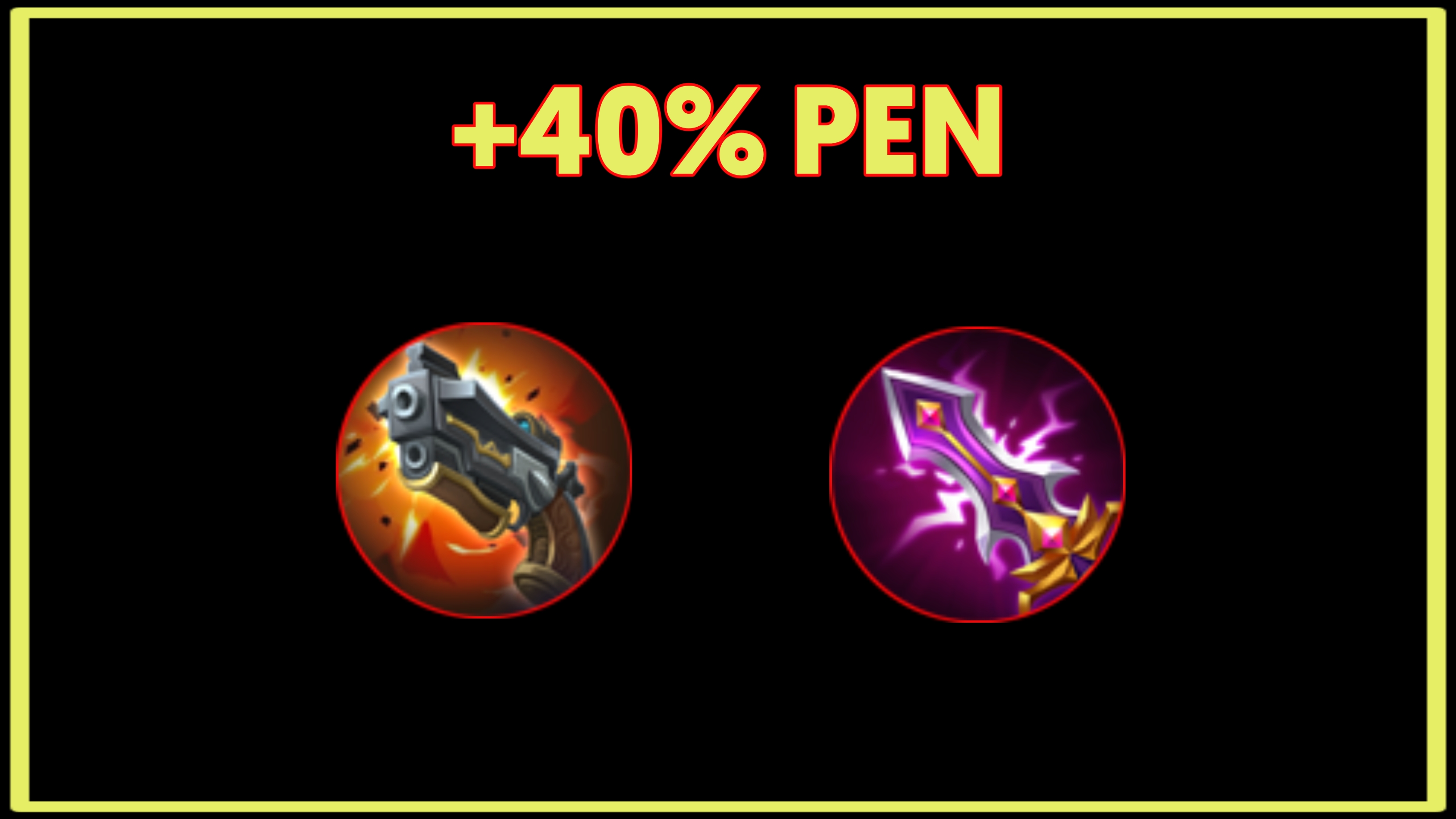 Defence မှာ Physical Def နဲ့ Magical Def ဆိုပြီး နှစ်မျိုးရှိတာမို့ Penetration မှာလည်း Physical Def ကို ထိုးဖောက်ဖို့ Physical PEN နဲ့ Magical Def ကို ထိုးဖောက်ဖို့ Magical PEN ဆိုပြီး နှစ်မျိုး ရှိပါတယ်။ Physical Item တွေထဲ Blade of Heptaseas , Hunter Strike နဲ့ Malefic Roar တို့မှာ PEN Damage ပါပြီး Magic Item ထဲမှာတော့ Genious Wand နဲ့ Divine Glaive တို့မှာ PEN Damage ပါပါတယ်။
